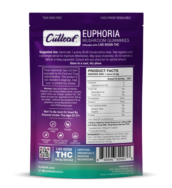 Cutleaf Euphoria Mushroom Gummies – Grape Gelato flavor |THC Gummies|1000mg|CBD|CBN|